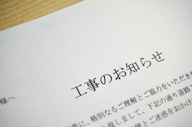何かトラブルが起きたときにすぐ電話できるため、お知らせは捨てずに必ず保管しておくようにしてください。ACTIVEでも倉敷の現場で、近隣の方からのご質問・相談はとても多いです。