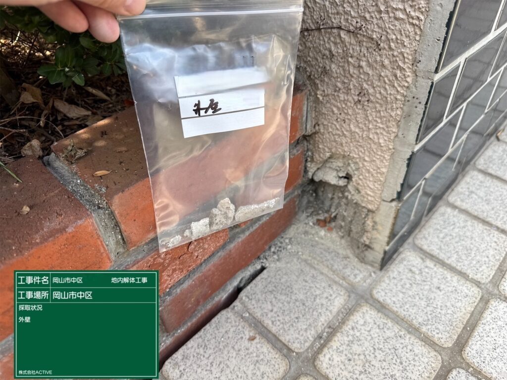 岡山県岡山市中区アスベスト(石綿)事前調査、分析用検体採取/外壁材